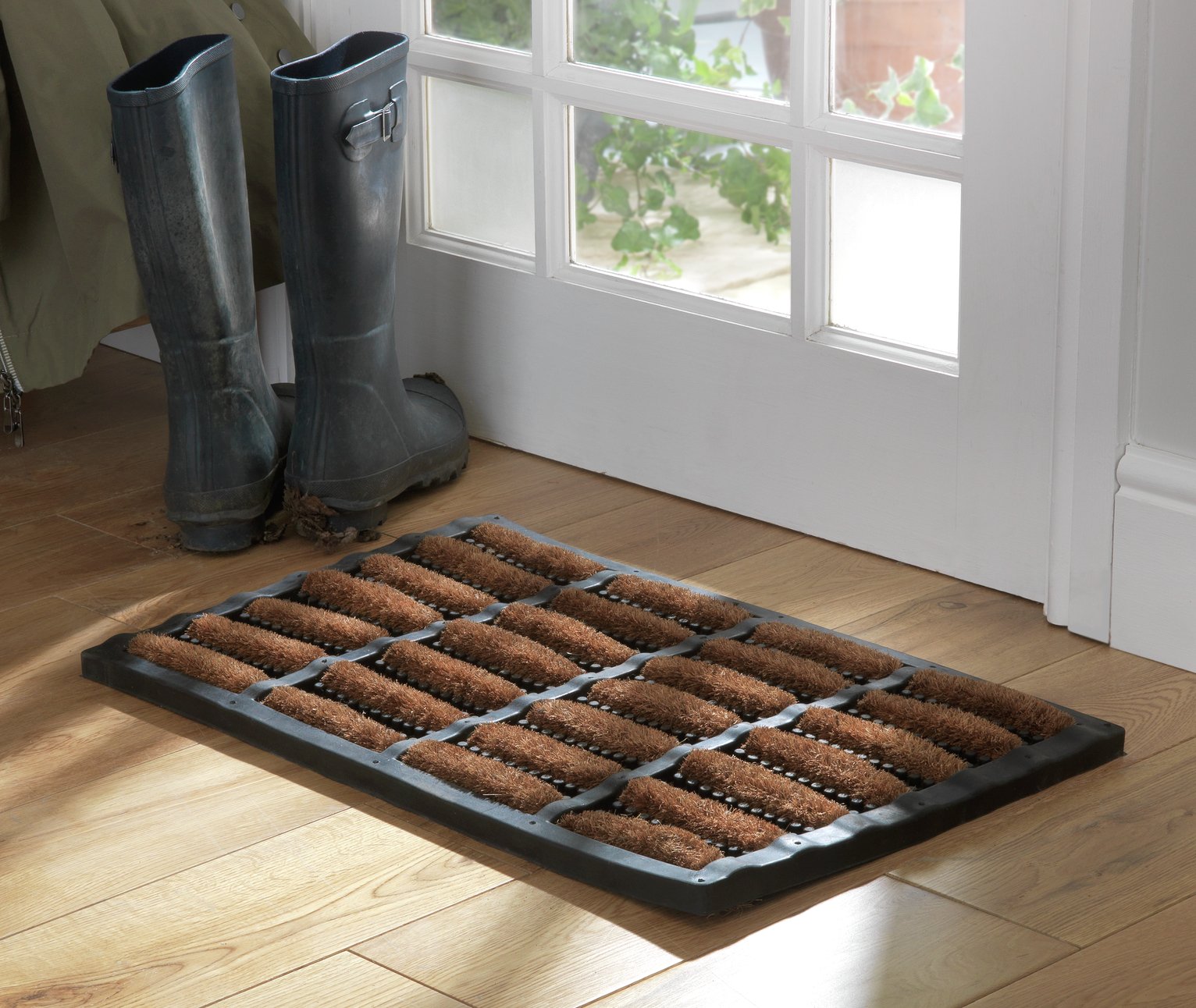 Doormats are created from absorbent materials often with a rough surface to help remove dirt and moisture from your shoes.